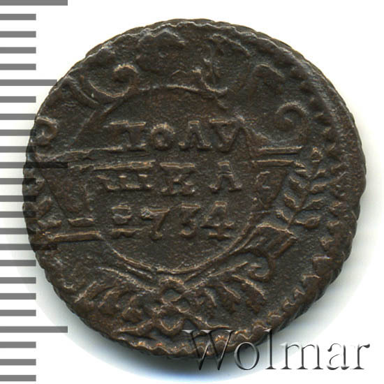 Реверс монеты полушка 1734 года
