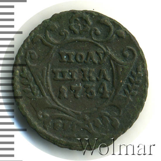 Аверс монеты полушка 1734 года
