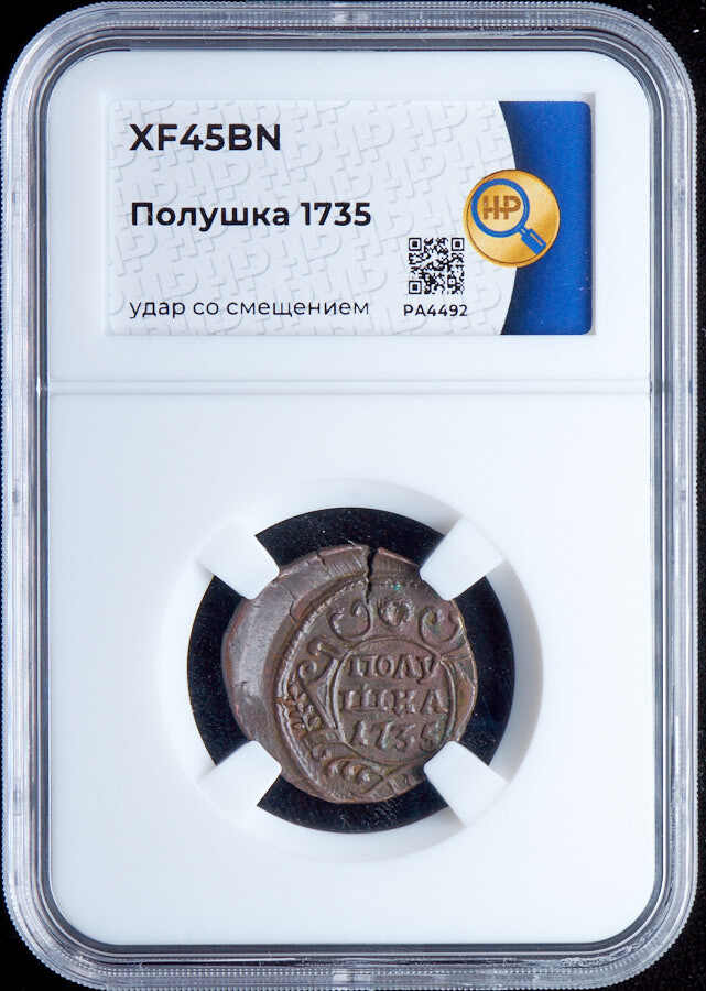 Полушка 1735 (в слабе) Аукцион: AdaCoins Online Состояние: XF 45 BN | 30.10.2025 |