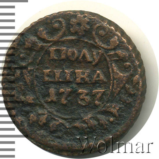 Аверс монеты полушка 1737 года