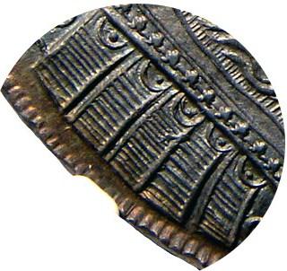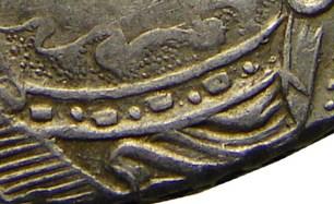 корсаж не параллелен окружности, 5 наплечников без фестонов, точки разделяют надпись реверса