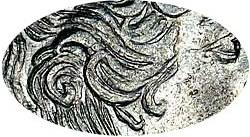 корсаж параллелен окружности, 5 наплечников c фестонами, особый портрет — прядь волос закрывает ухо
