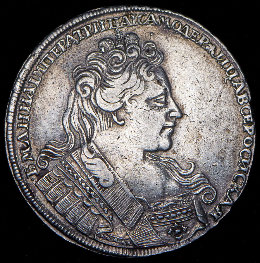 В центре профильный портрет вправо императрицы Анны Иоанновны. Вокруг портрета надпись: «БМ АННА IМПЕРАТРИЦА IСАМОДЕРЖИЦА ВСЕРОСИСКАЯ».