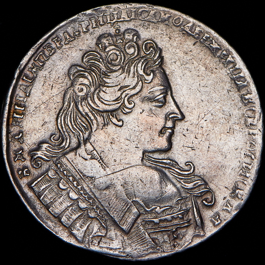 В центре профильный портрет вправо императрицы Анны Иоанновны. Вокруг портрета круговая надпись: «БМ АННА IМПЕРАТРИЦА IСАМОДЕРЖИЦА ВСЕРОСИСКАЯ».