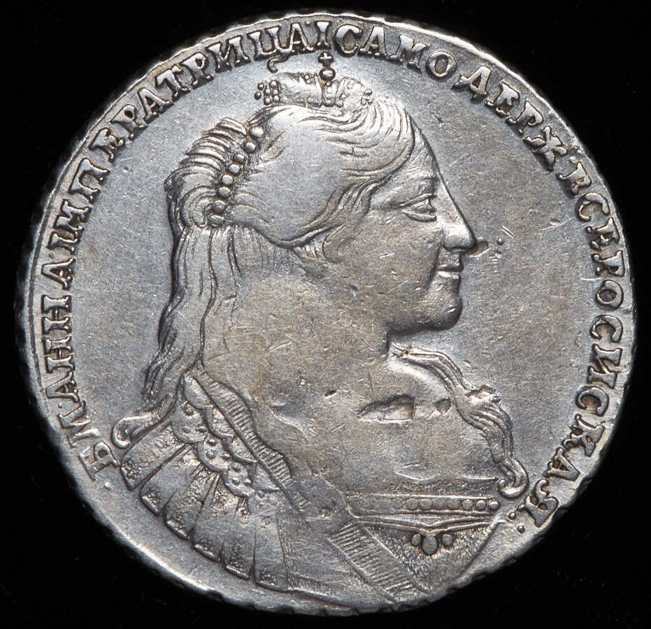 В центре профильный портрет вправо императрицы Анны Иоанновны. Вокруг портрета надпись: «БМ АННА IМПЕРАТРИЦА IСАМОДЕРЖИЦА ВСЕРОСИСКАЯ».