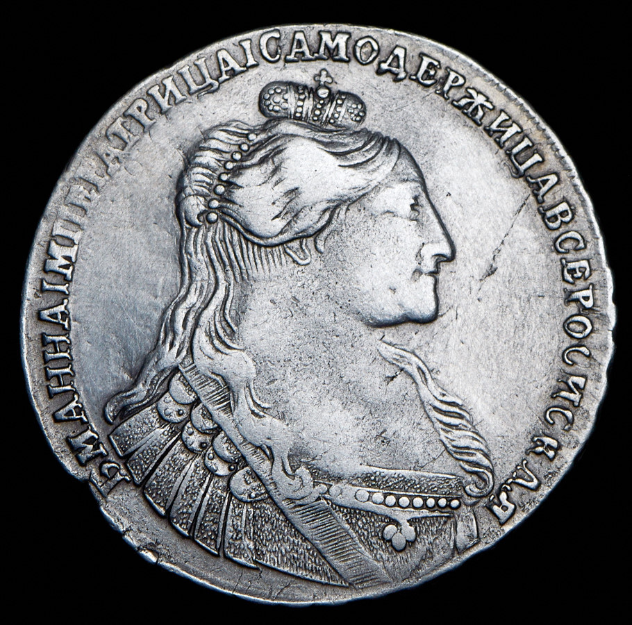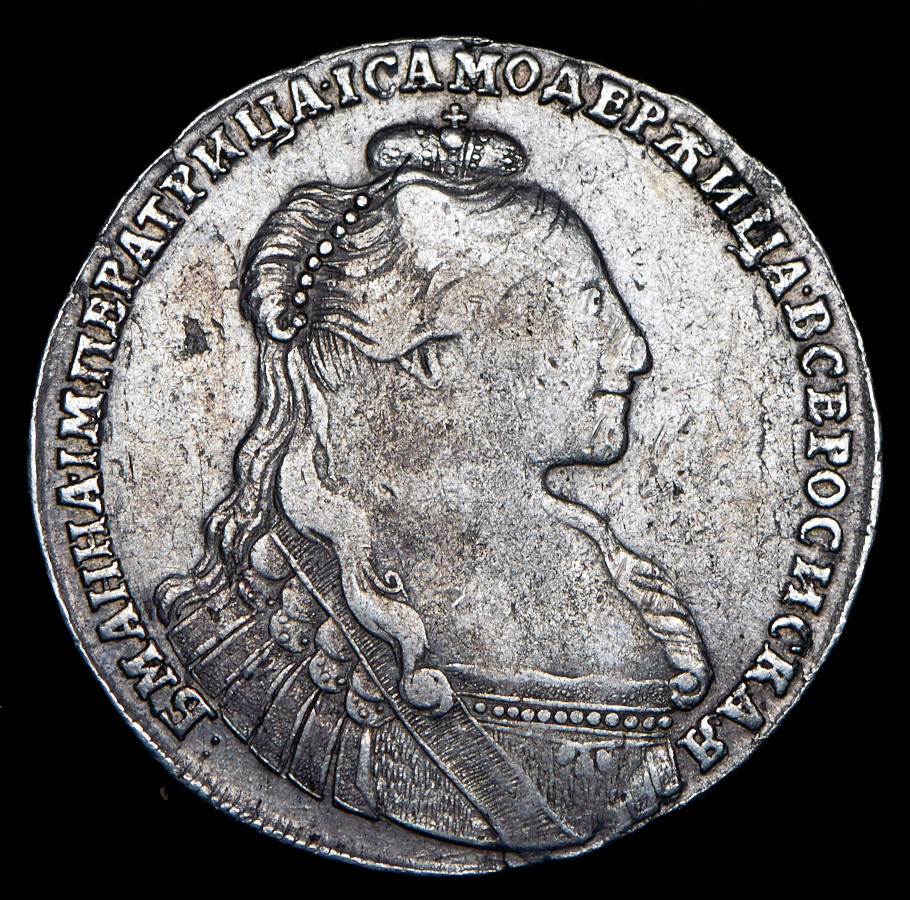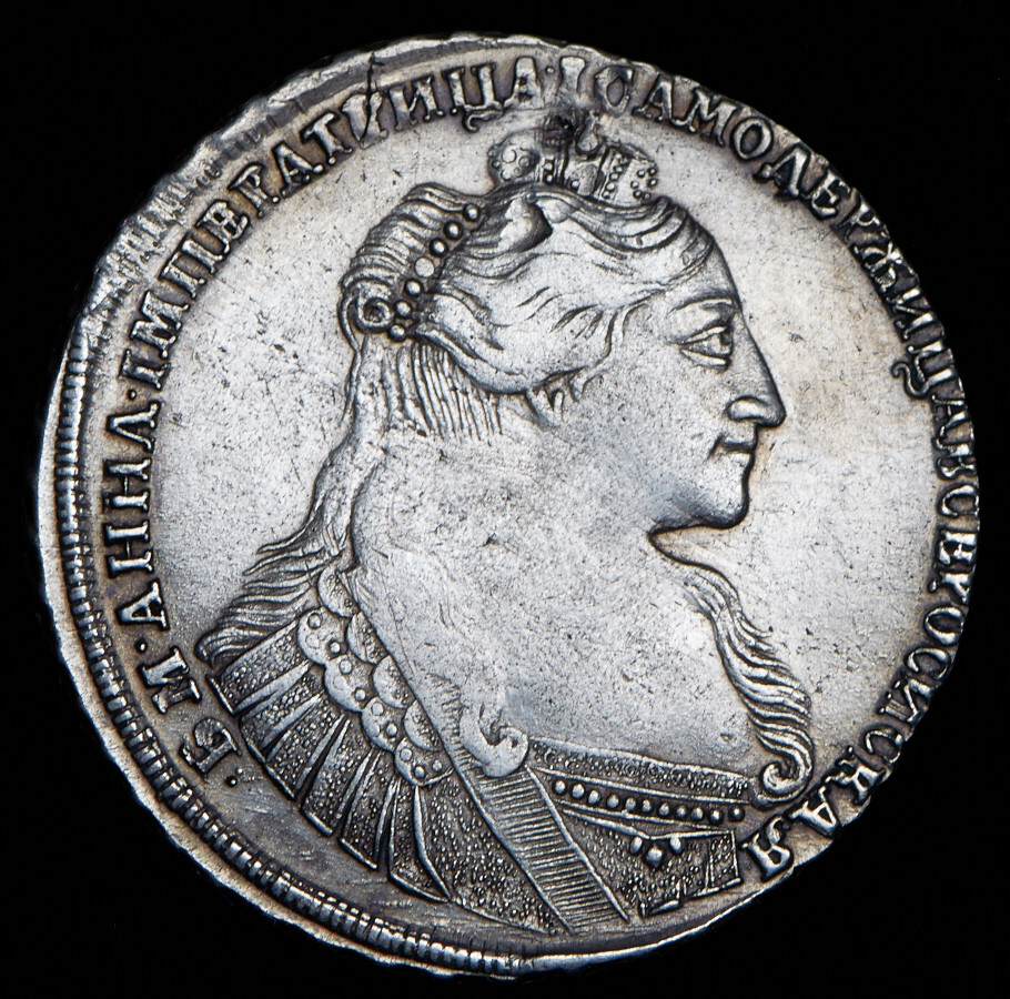 В центре профильный портрет вправо императрицы Анны Иоанновны. Вокруг портрета надпись: «•Б М АННА IМПЕРАТРИЦА IСАМОДЕРЖИЦА ВСЕРОСИСКАЯ».