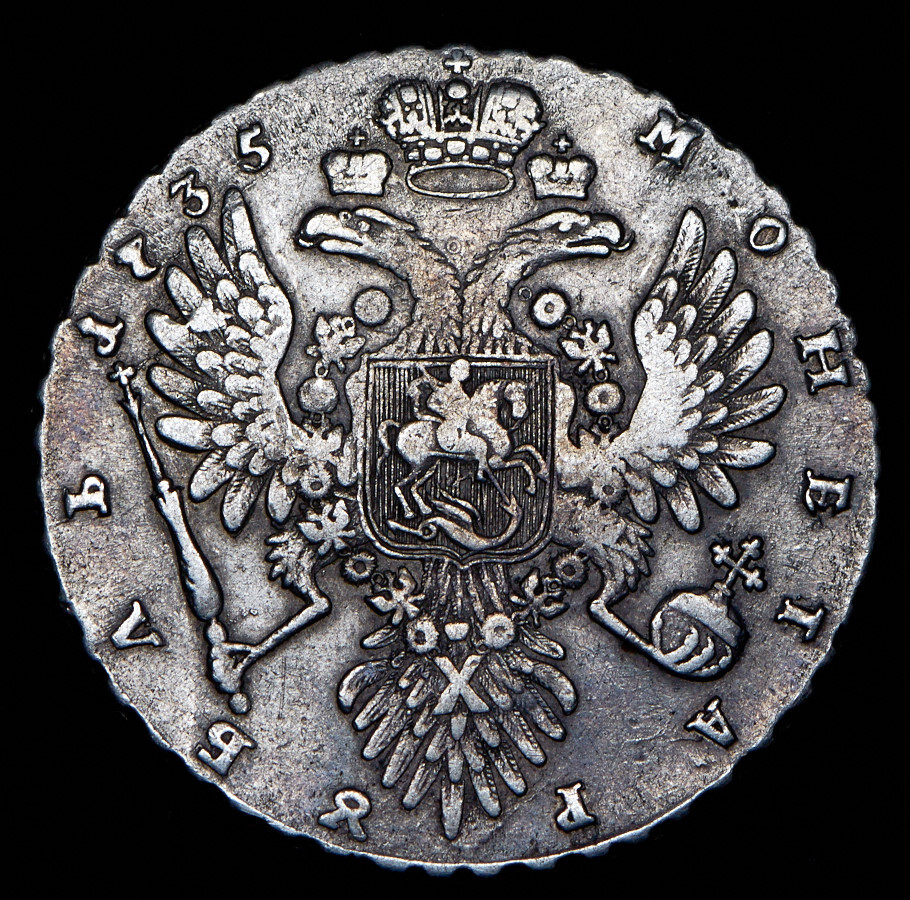 Аверс монеты 1 рубль 1735 года хвост острый