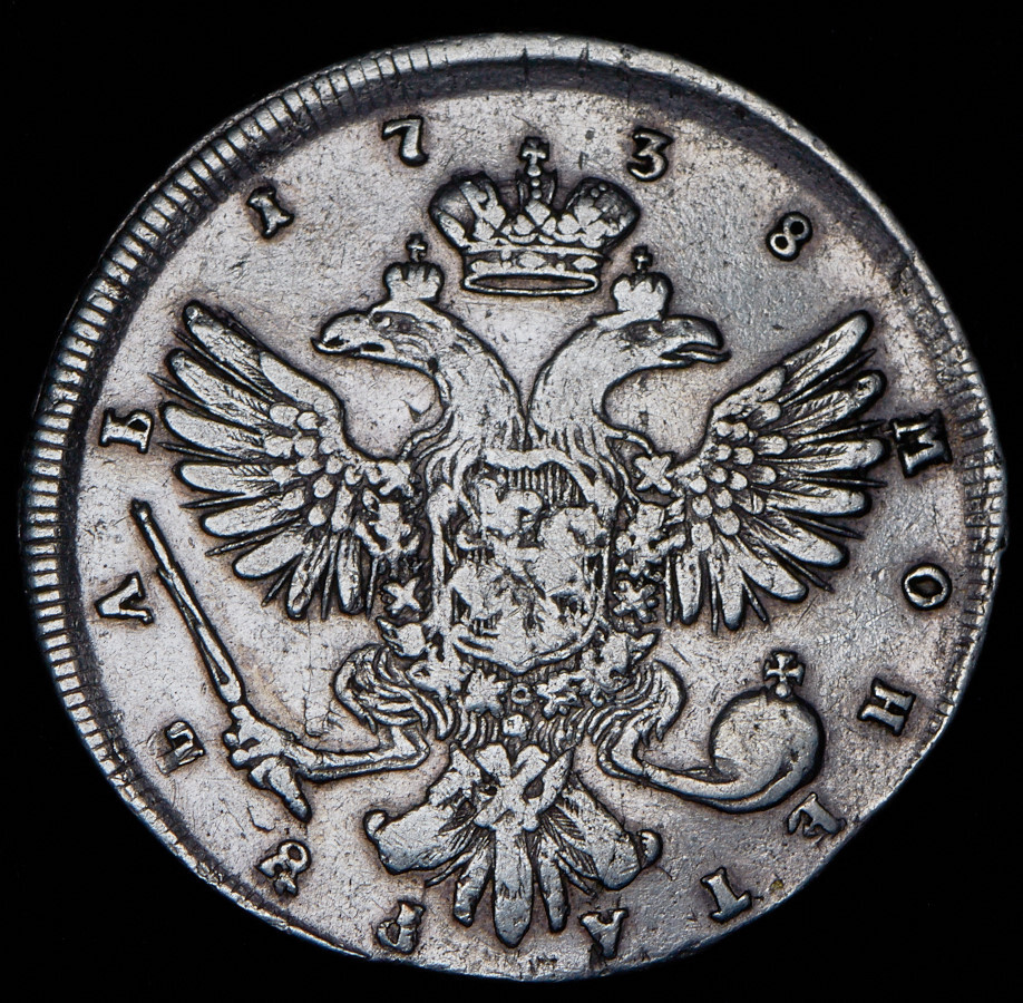 Аверс монеты 1 рубль 1738 года СПБ