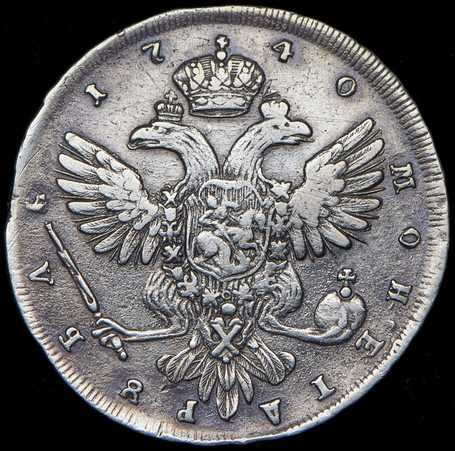 Аверс монеты 1 рубль 1740 года СПБ