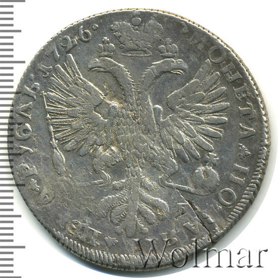 Реверс монеты 1 рубль 1726 года СПБ портрет влево