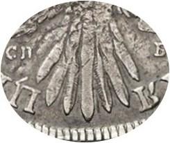 Реверс монеты 1 рубль 1727 года СПБ сорочий хвост