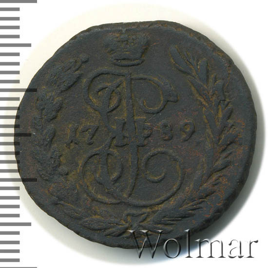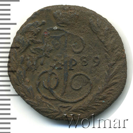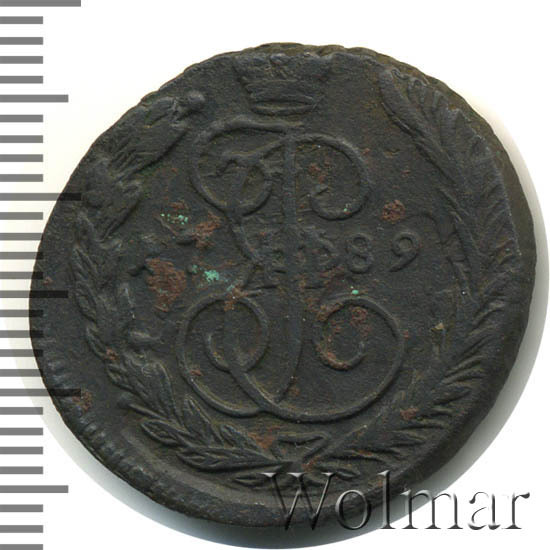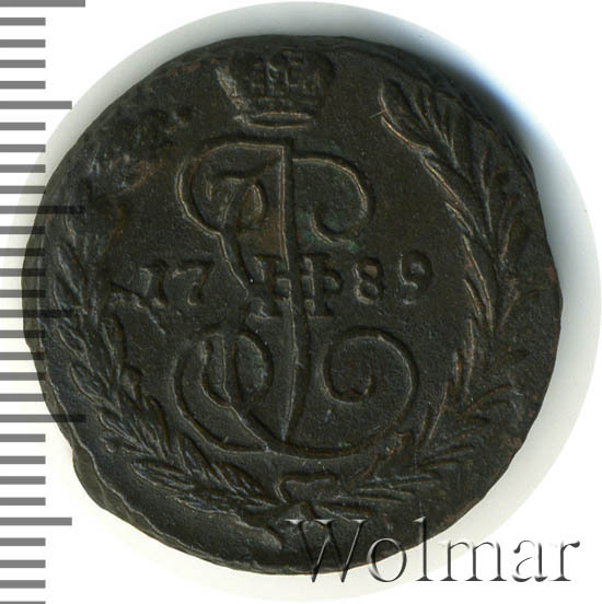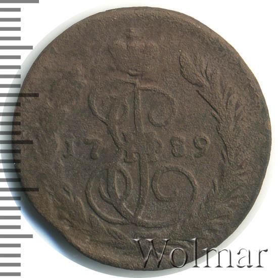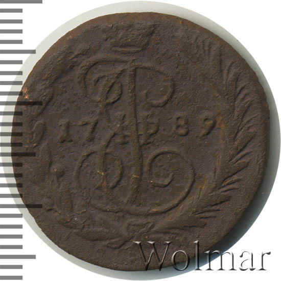 В центре изображён вензель Екатерины II. Над вензелем - императорская корона. По обеим сторонам от вензеля цифры даты выпуска монеты: слева «17», справа - «89» (1789 год). Вокруг центрального изображения, вдоль канта, изображён венок из лавровой и пальмовой ветвей, которые, в нижней части, перевязаны лентой на узел бантом.