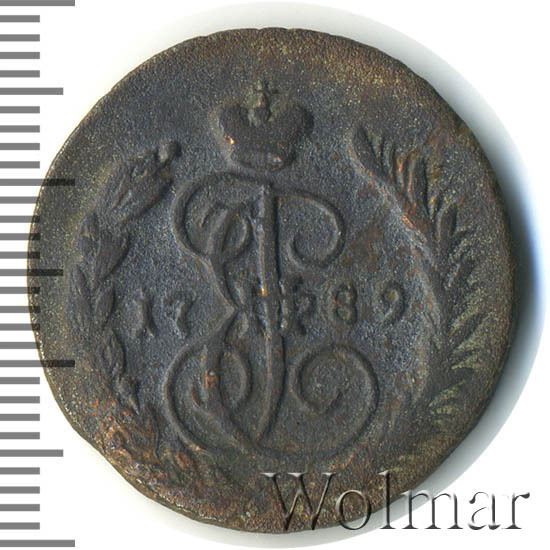 Аверс монеты 1 копейка 1789 года ЕМ