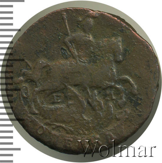 Реверс монеты 1 копейка 1790 года ЕМ