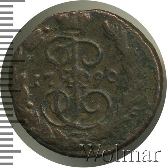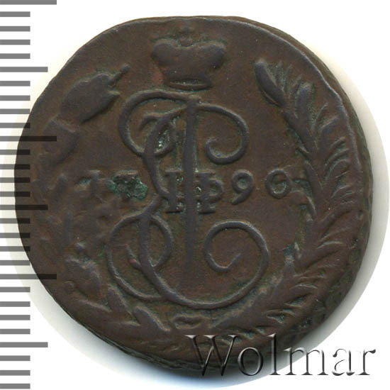 В центре изображён вензель Екатерины II. Над вензелем - императорская корона. По обеим сторонам от вензеля цифры даты выпуска монеты: слева «17», справа - «90» (1790 год). Вокруг центрального изображения, вдоль канта, изображён венок из лавровой и пальмовой ветвей, которые, в нижней части, перевязаны лентой на узел бантом.