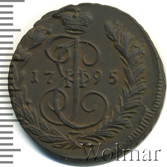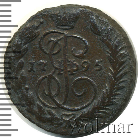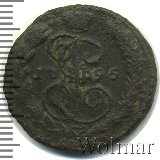 В центре изображён вензель Екатерины II. Над вензелем - императорская корона. По обеим сторонам от вензеля цифры даты выпуска монеты: слева «17», справа - «95» (1795 год). Вокруг центрального изображения, вдоль канта, изображён венок из лавровой и пальмовой ветвей, которые, в нижней части, перевязаны лентой на узел бантом.
