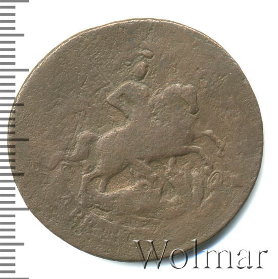 В центре изображён вензель Екатерины II. Над вензелем - императорская корона. По обеим сторонам от вензеля цифры даты выпуска монеты: слева - «17», справа - «65» (1765 год). Вокруг центрального изображения, вдоль канта, изображён венок из лавровой и пальмовой ветвей, которые, в нижней части, перевязаны лентой на узел бантом.