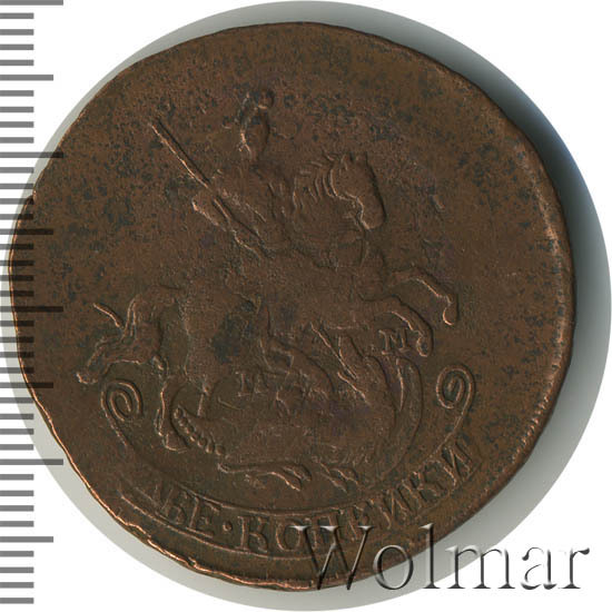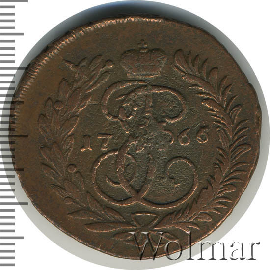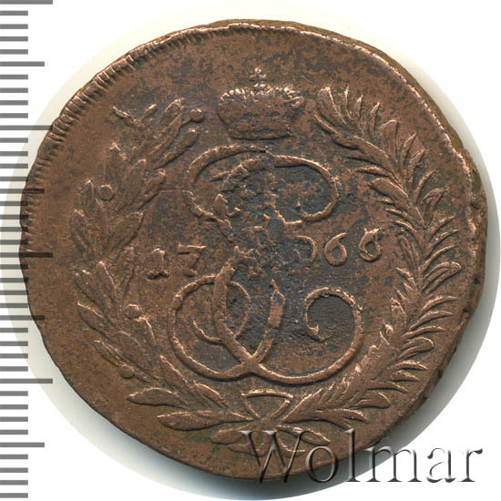 Об этой двух копейках можно сказать, что она рядовая, многотиражная монета. Представляет коллекционный интерес в высоком качестве. На такие экземпляра 2 коп. 1766 ММ цена возрастает в несколько раз по сравнению с монетками низкой сохранности.
