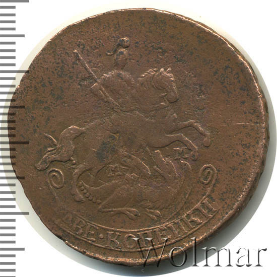 Цена на монету 2 копейки 1766 года ММ на сегодня, 29 декабря 2025 года