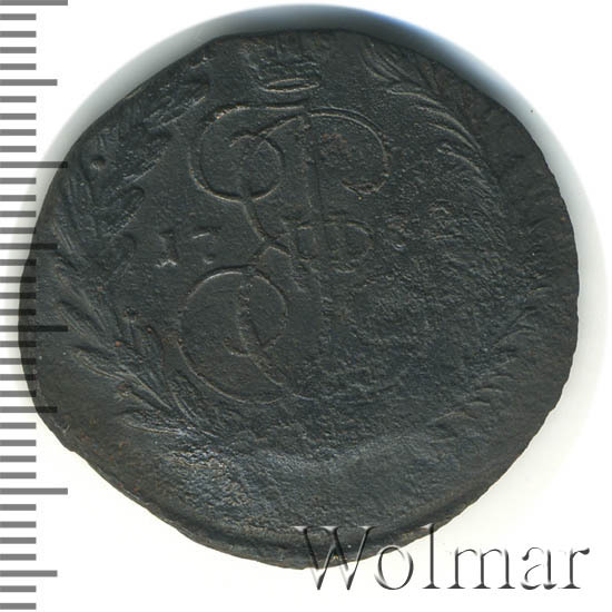 В центре изображён вензель Екатерины II. Над вензелем - императорская корона. По обеим сторонам от вензеля цифры даты выпуска монеты: слева - «17», справа - «72» (1772 год). Вокруг центрального изображения, вдоль канта, изображён венок из лавровой и пальмовой ветвей, которые, в нижней части, перевязаны лентой на узел бантом.