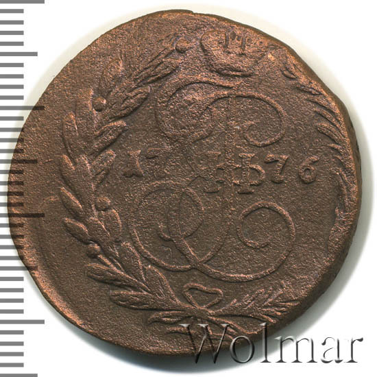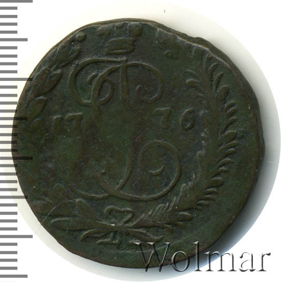 В центре изображён вензель Екатерины II. Над вензелем - императорская корона. По обеим сторонам от вензеля цифры даты выпуска монеты: слева - «17», справа - «76» (1776 год). Вокруг центрального изображения, вдоль канта, изображён венок из лавровой и пальмовой ветвей, которые, в нижней части, перевязаны лентой на узел бантом.