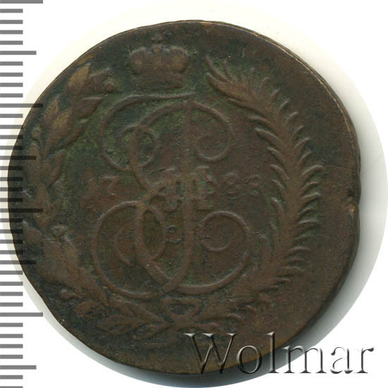 Аверс монеты 2 копейки 1788 года ММ гурт сетчатый