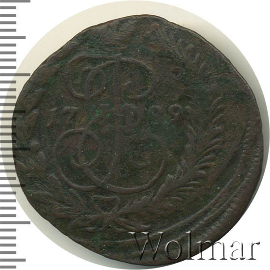 В центре изображён вензель Екатерины II. Над вензелем - императорская корона. По обеим сторонам от вензеля цифры даты выпуска монеты: слева - «17», справа - «89» (1789 год). Вокруг центрального изображения, вдоль канта, изображён венок из лавровой и пальмовой ветвей, которые, в нижней части, перевязаны лентой на узел бантом.