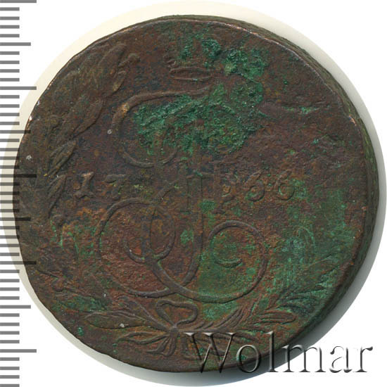 Цена на монету 5 копеек 1766 года ЕМ на сегодня, 22 января 2026 года