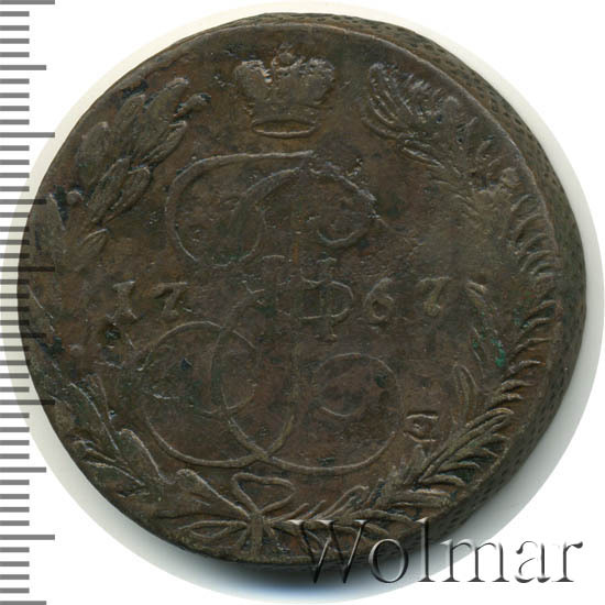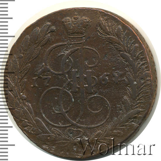Аверс монеты 5 копеек 1767 года ЕМ