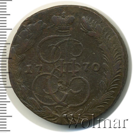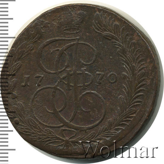 Реверс монеты 5 копеек 1770 года ЕМ орёл 1770