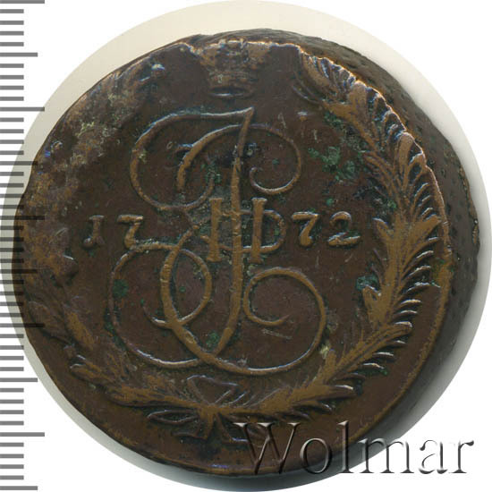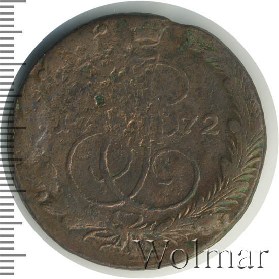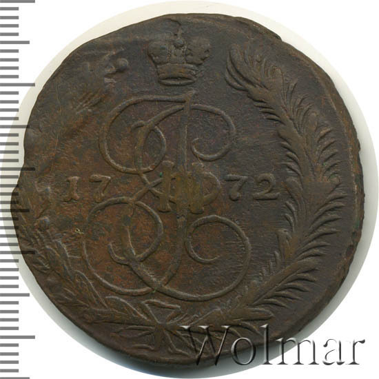 Аверс монеты 5 копеек 1772 года ЕМ