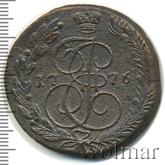 В центре изображён вензель Екатерины II. Над вензелем - императорская корона. По обеим сторонам от вензеля цифры даты выпуска монеты: слева - «17», справа - «76» (1776 год). Вокруг центрального изображения, вдоль канта, изображён венок из лавровой и пальмовой ветвей, которые, в нижней части, перевязаны лентой на узел бантом.