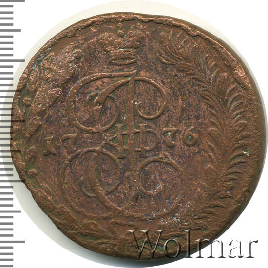 Аверс монеты 5 копеек 1776 года ЕМ