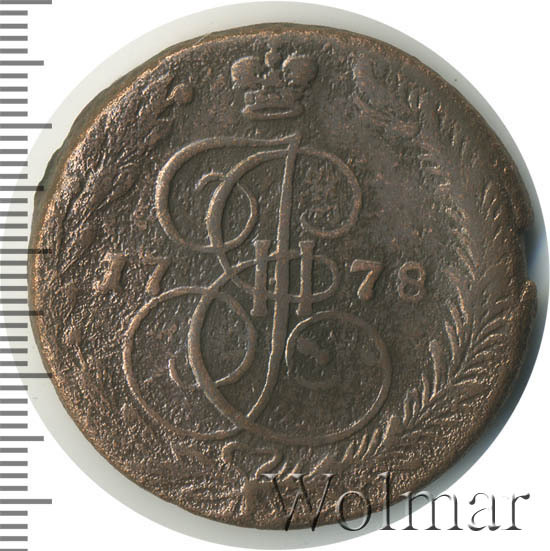 Аверс монеты 5 копеек 1778 года ЕМ орёл 1770