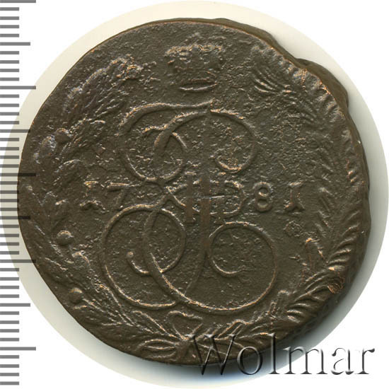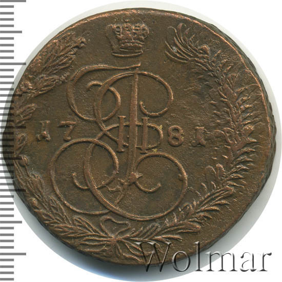 Цена на монету 5 копеек 1781 года ЕМ на сегодня, 25 октября 2025 года