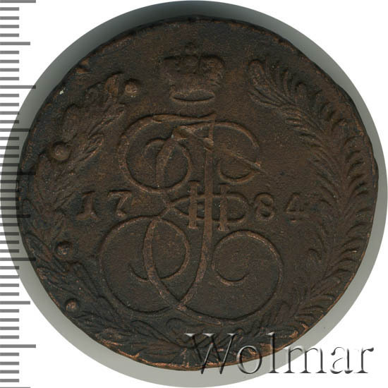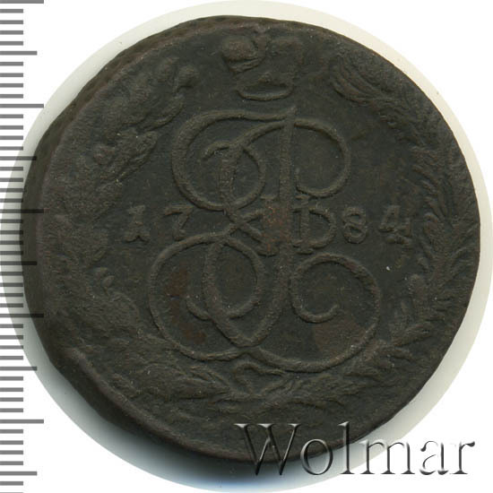 В центре изображён вензель Екатерины II. Над вензелем - императорская корона. По обеим сторонам от вензеля цифры даты выпуска монеты: слева - «17», справа - «84» (1784 год). Вокруг центрального изображения, вдоль канта, изображён венок из лавровой и пальмовой ветвей, которые, в нижней части, перевязаны лентой на узел бантом.
