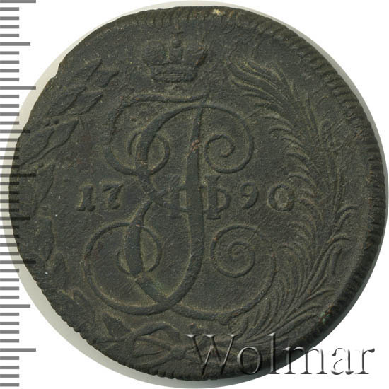 В центре изображён вензель Екатерины II. Над вензелем - императорская корона. По обеим сторонам от вензеля цифры даты выпуска монеты: слева - «17», справа - «90» (1790 год). Вокруг центрального изображения, вдоль канта, изображён венок из лавровой и пальмовой ветвей, которые, в нижней части, перевязаны лентой на узел бантом.