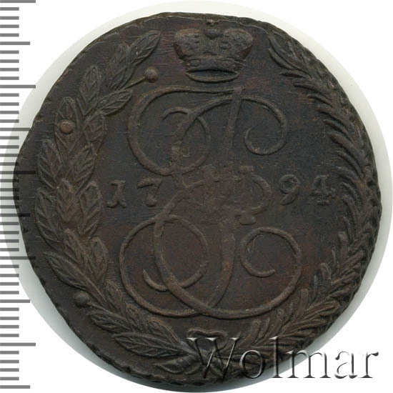 В центре изображён вензель Екатерины II. Над вензелем - императорская корона. По обеим сторонам от вензеля цифры даты выпуска монеты: слева - «17», справа - «94» (1794 год). Вокруг центрального изображения, вдоль канта, изображён венок из лавровой и пальмовой ветвей, которые, в нижней части, перевязаны лентой на узел бантом.