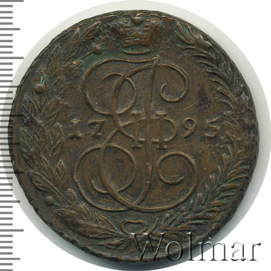 В центре изображён вензель Екатерины II. Над вензелем - императорская корона. По обеим сторонам от вензеля цифры даты выпуска монеты: слева - «17», справа - «95» (1795 год). Вокруг центрального изображения, вдоль канта, изображён венок из лавровой и пальмовой ветвей, которые, в нижней части, перевязаны лентой на узел бантом.