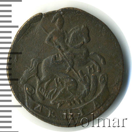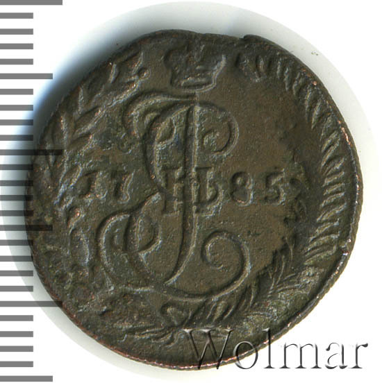 В центре изображён вензель Екатерины II. Над вензелем - императорская корона. По обеим сторонам от вензеля цифры даты выпуска монеты: слева «17», справа - «85» (1785 год). Вокруг центрального изображения, вдоль канта, изображён венок из лавровой и пальмовой ветвей, которые, в нижней части, перевязаны лентой на узел бантом.