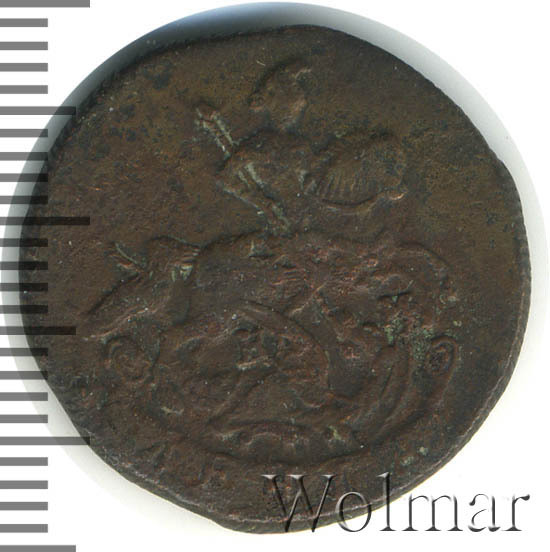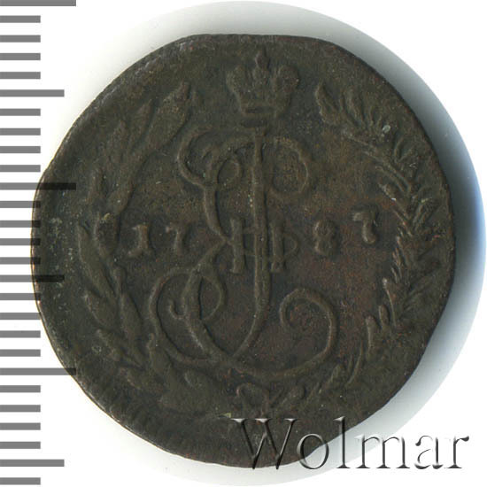 В центре изображён вензель Екатерины II. Над вензелем - императорская корона. По обеим сторонам от вензеля цифры даты выпуска монеты: слева «17», справа - «87» (1787 год). Вокруг центрального изображения, вдоль канта, изображён венок из лавровой и пальмовой ветвей, которые, в нижней части, перевязаны лентой на узел бантом.