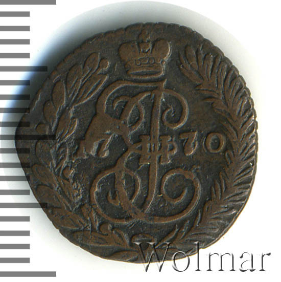 В центре изображён вензель Екатерины II. Над вензелем - императорская корона. По обеим сторонам от вензеля цифры даты выпуска монеты: слева «17», справа - «70» (1770 год). Вокруг центрального изображения, вдоль канта, изображён венок из лавровой и пальмовой ветвей, которые, в нижней части, перевязаны лентой на узел бантом.