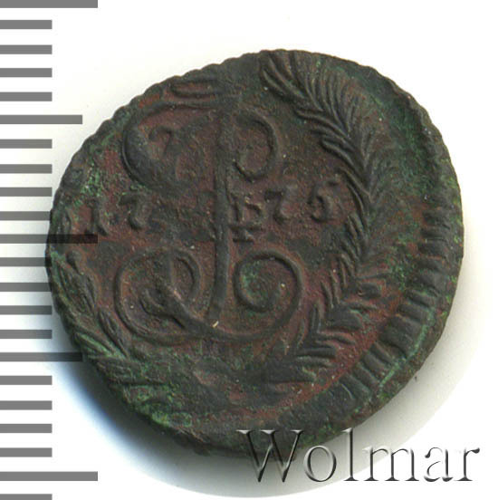 В центре изображён вензель Екатерины II. Над вензелем - императорская корона. По обеим сторонам от вензеля цифры даты выпуска монеты: слева «17», справа - «75» (1775 год). Вокруг центрального изображения, вдоль канта, изображён венок из лавровой и пальмовой ветвей, которые, в нижней части, перевязаны лентой на узел бантом.