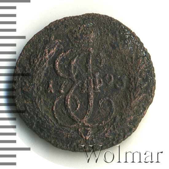 В центре изображён вензель Екатерины II. Над вензелем - императорская корона. По обеим сторонам от вензеля цифры даты выпуска монеты: слева «17», справа - «93» (1793 год). Вокруг центрального изображения, вдоль канта, изображён венок из лавровой и пальмовой ветвей, которые, в нижней части, перевязаны лентой на узел бантом.