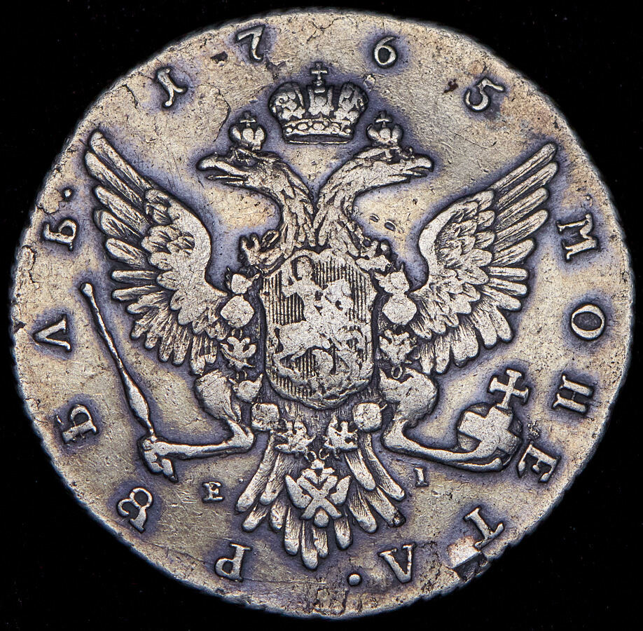 Реверс монеты 1 рубль 1765 года ММД-TI-EI