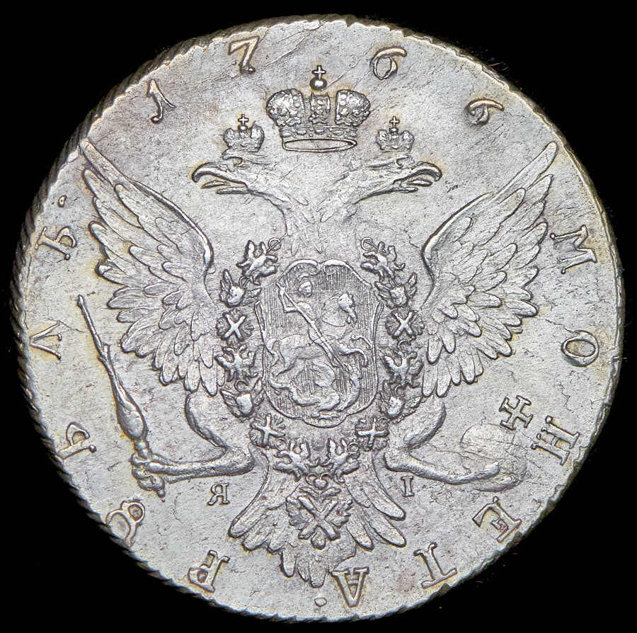 Аверс монеты 1 рубль 1766 года СПБ-TI-ЯI