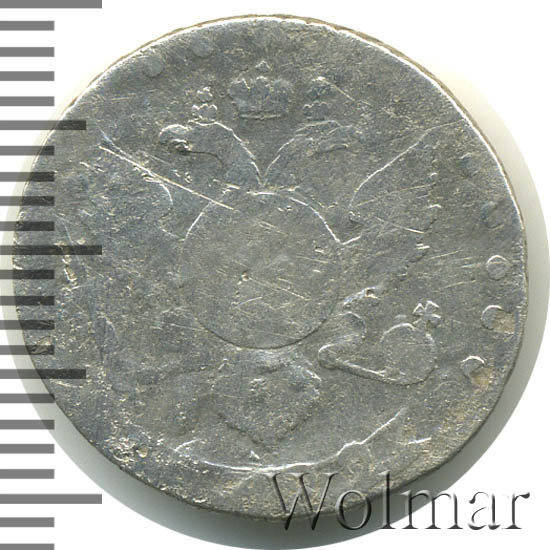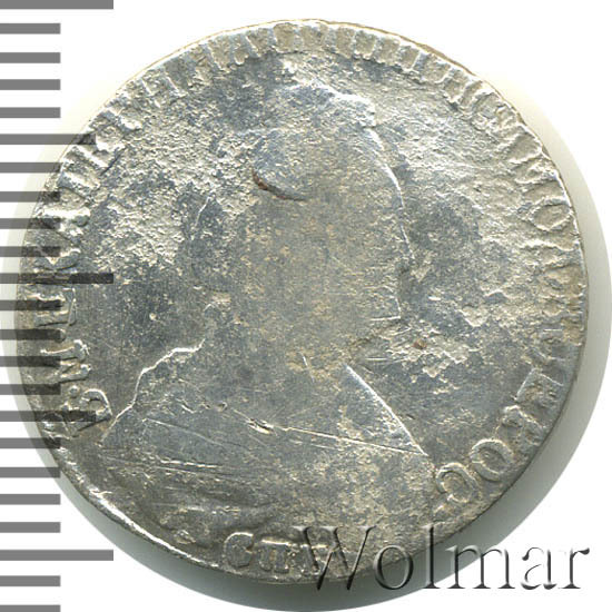В центре профильный портрет вправо императрицы Екатерины II. Вокруг портрета круговая надпись: «Б•М•ЕКАТЕРИНА•II•IМП•ИСАМОД•ВСЕРОС•». Под портретом буквы «С П Б», обозначение Санкт-Петербургского монетного двора.