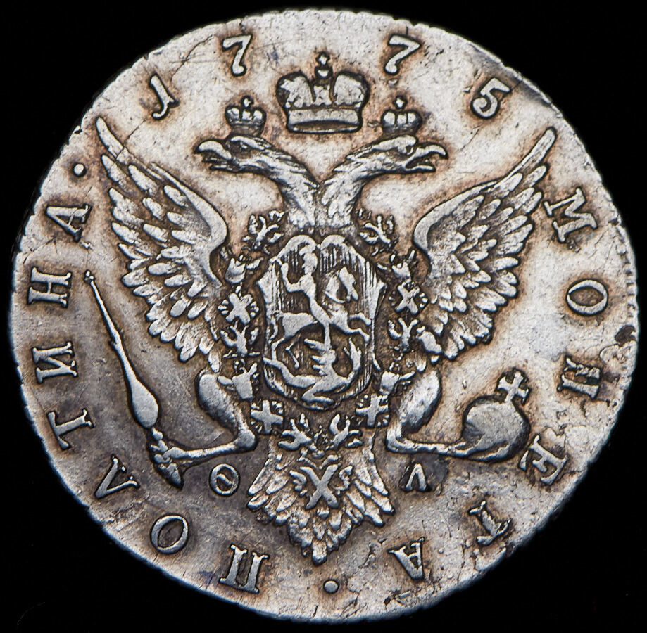 Полтина 1775 г. СПБ-ТI-ФЛ. Аукцион: RusNumismat Состояние: VF | 01.03.2015 |