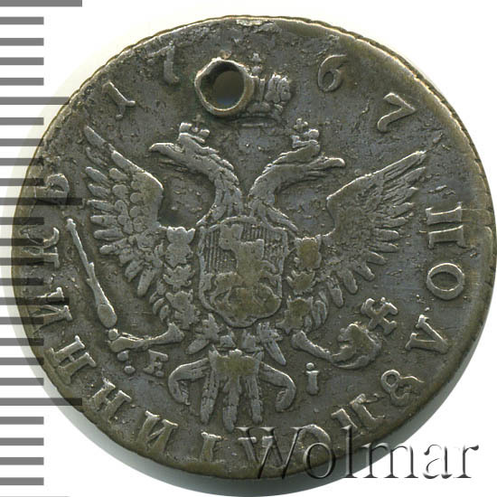 Аверс монеты полуполтинник 1767 года ММД-EI