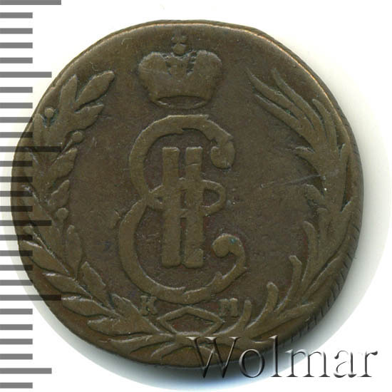 Цена на монету 1 копейка 1767 года КМ сибирская на сегодня, 24 января 2026 года